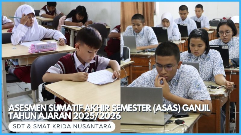SD dan SMA Terpadu Krida Nusantara melaksanakan Asesmen Sumatif Akhir Semester (ASAS) sebagai bentuk evaluasi pembelajaran yang dilakukan pada akhir semester untuk mengukur pencapaian kompetensi murid terhadap materi yang telah dipelajari selama satu semester. Untuk SMA, ASAS berlangsung pada 1-10 Desember 2025, sementara di SD berlangsung pada 4-10 Desember 2025. Asesmen di SMA diikuti oleh