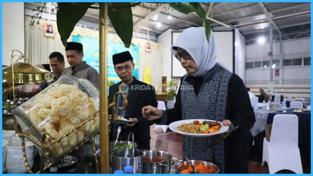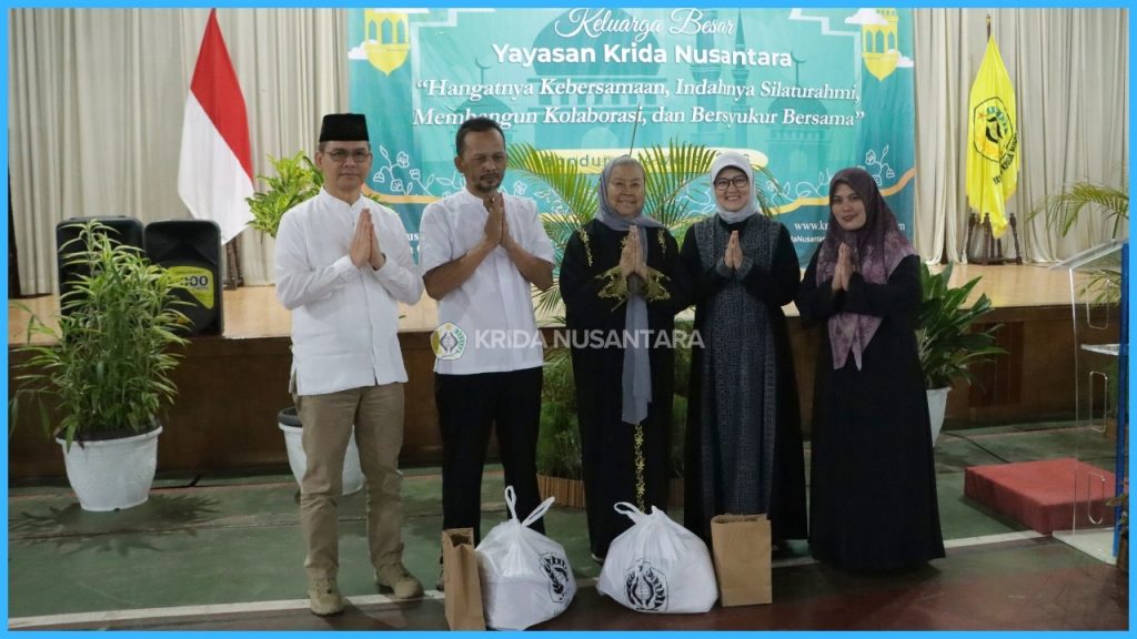 Acara Buka Puasa Bersama Yayasan Krida Nusantara berlangsung dengan penuh kehangatan pada Sabtu, 14 Maret 2026 di GOR Jati. Mengusung tema “Hangatnya Kebersamaan, Indahnya Silaturahmi, Membangun Kolaborasi, dan Bersyukur Bersama”, kegiatan ini dihadiri oleh Ketua Pembina Yayasan Krida Nusantara, Tuti Sutiawati Try Sutrisno beserta jajaran Pengurus Yayasan dan keluarga. Turut hadir pula Dr..H. Tata Sukayat. M.Ag selaku tamu kehormatan, manajemen dan guru dari jenjang TK, SD, hingga SMA, karyawan, pelatih, serta petugas keamanan.